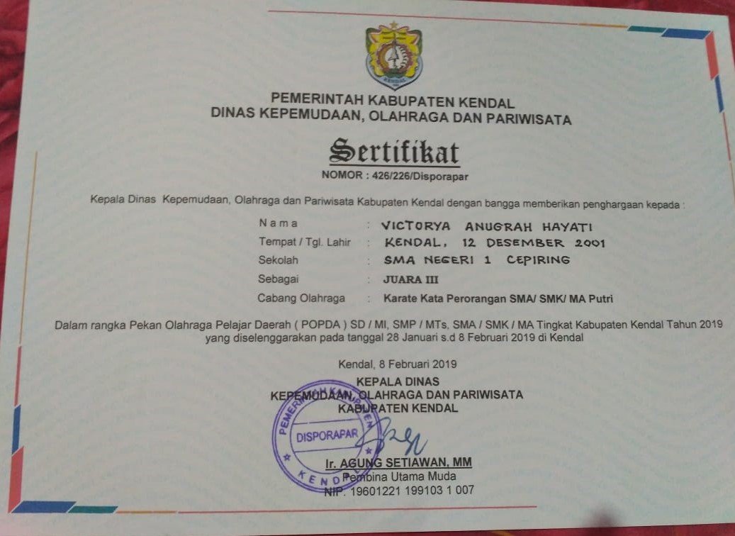 Juara III Tingkat Kabupaten Kendal Karate Kata - 8 Februari 2019